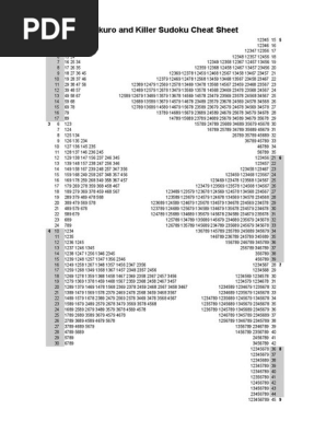 On this page you can find documents to help solve. On this page you can find documents to help solve. 6x6 8x8 10x10 12x12 and 16x16 jigsaw sudoku and jigsaw combination diagonal sudoku x consecutive sudoku non. Kakuro combinations pdf kakuro and killer sudoku cheat sheet.