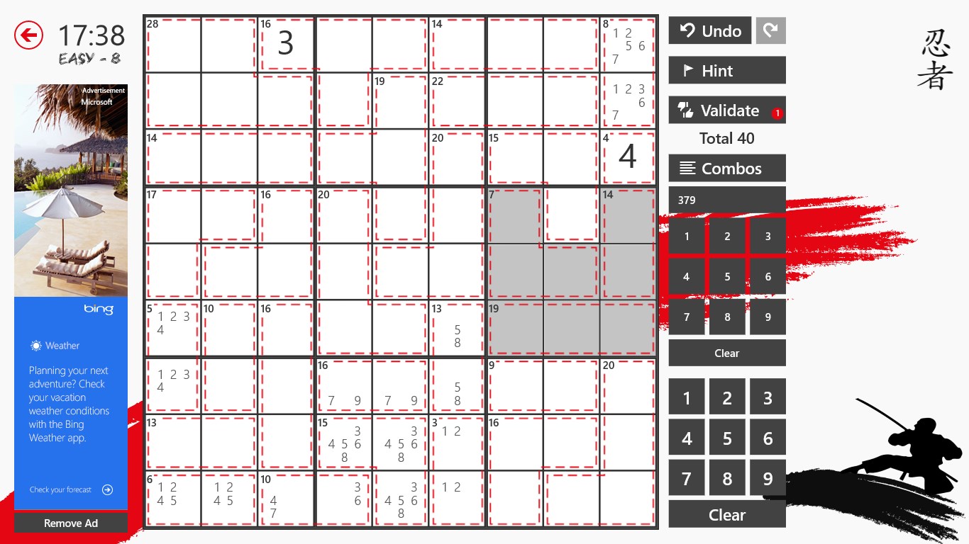 Really crazy and frame sudoku which is something between killer sudoku and outside sudoku then there are all sorts of sudoku variants you can think of. The killer sudoku in which the squares are grouped by dotted lines and all the digits of the squares must sum the number that appears in one of them. 4 5 14 6 15 7 16 25 kakuro number combinations. Killer sudoku product.