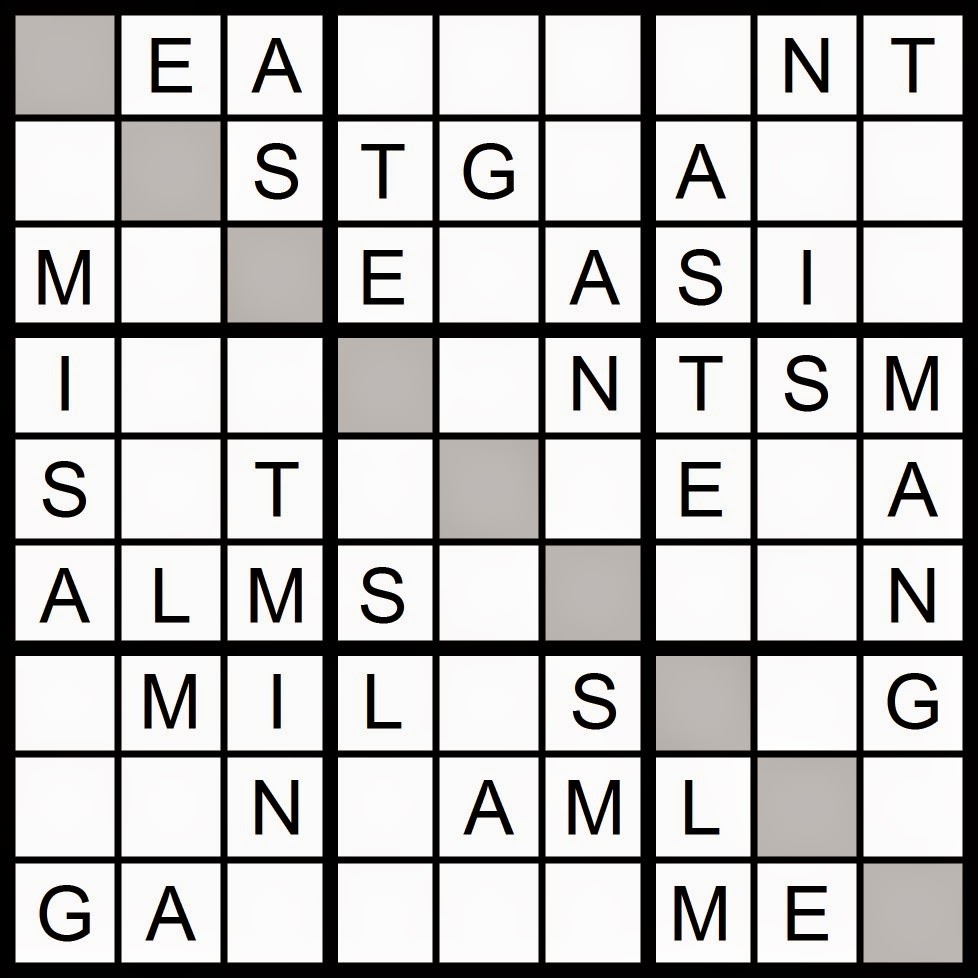 Tool solver for wordoku grids resolution directly or step by step. This variant on sudoku is considerably harder to solve than the three by three sudoku. Wordoku is a variant of sudoku that uses 9 letters instead of 9 digits. Sudoku is a logic based combinatorial number placement puzzle.